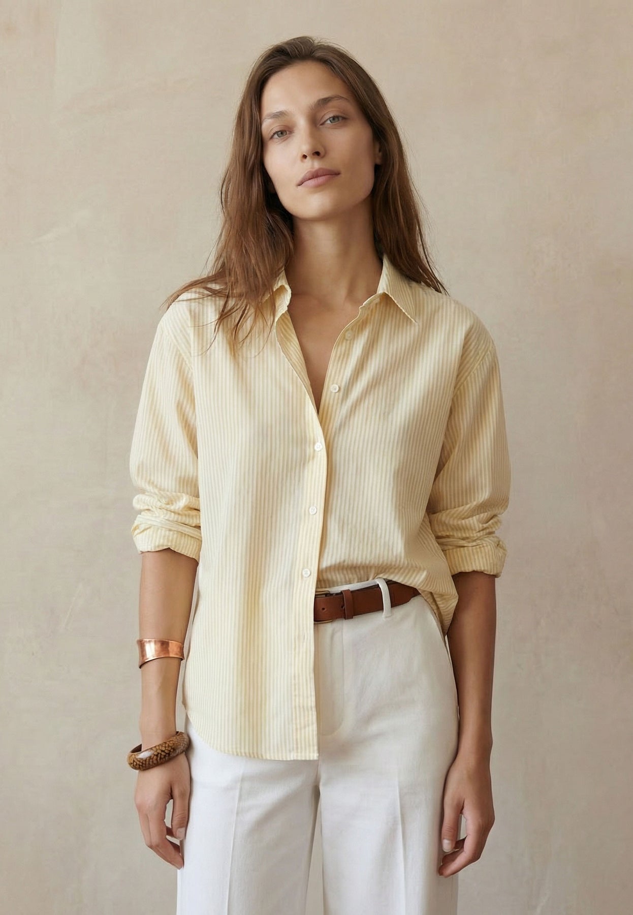 Diese Oxfordbluse überzeugt mit einer klassischen Optik und hochwertiger Verarbeitung. Die Baumwolle sorgt für eine angenehme Struktur, ist atmungsaktiv und bietet ein natürliches Tragegefühl im Alltag. Das feine Streifenmuster verleiht der Bluse eine zeitlose, gepflegte Ausstrahlung, während der klassische Hemdkragen und die durchgehende Knopfleiste den stilvollen Charakter unterstreichen. Die langen Ärmel mit Manschetten runden das Design harmonisch ab. Ob im Büro, in der Freizeit oder kombiniert zu modernen Casual-Looks – diese Hemdbluse ist vielseitig einsetzbar und ein verlässlicher Klassiker im Kleiderschrank.