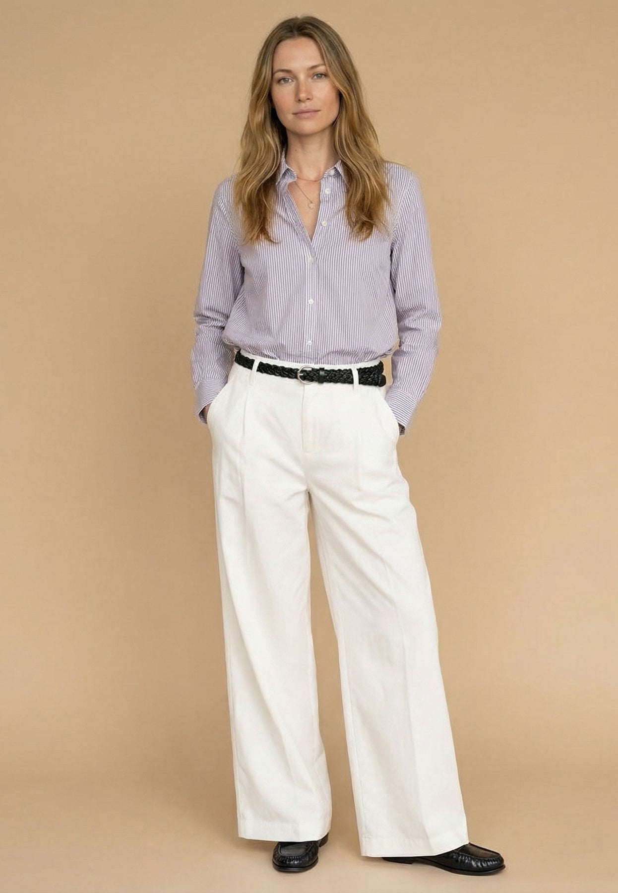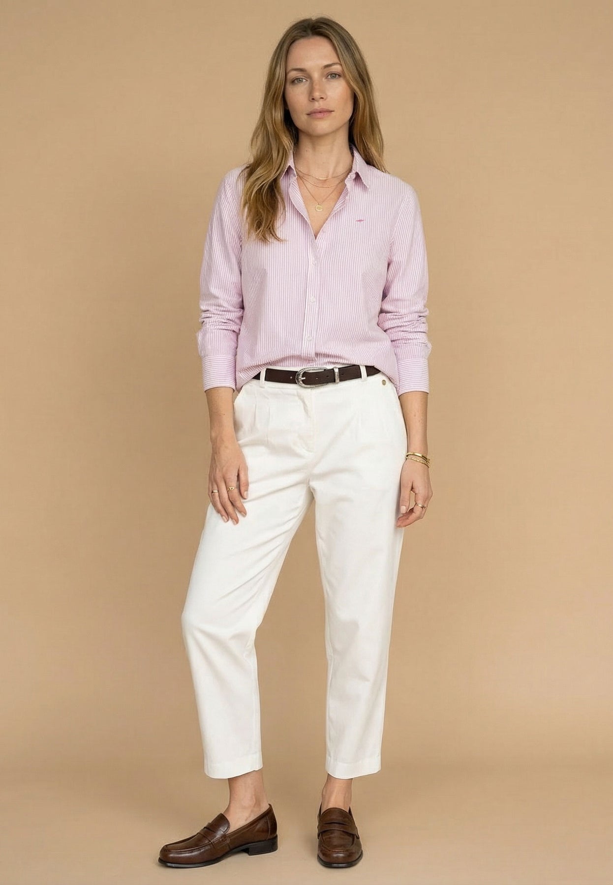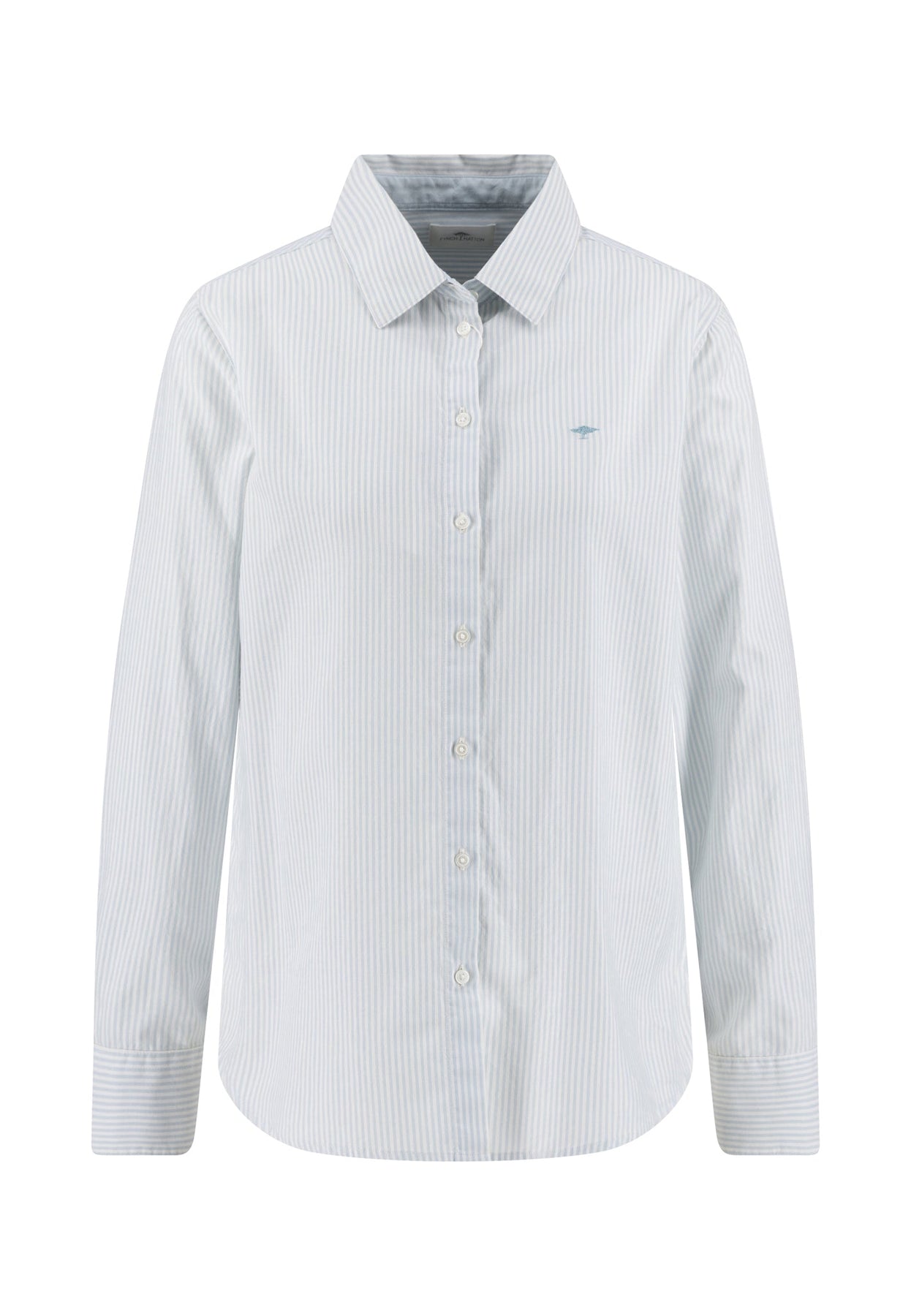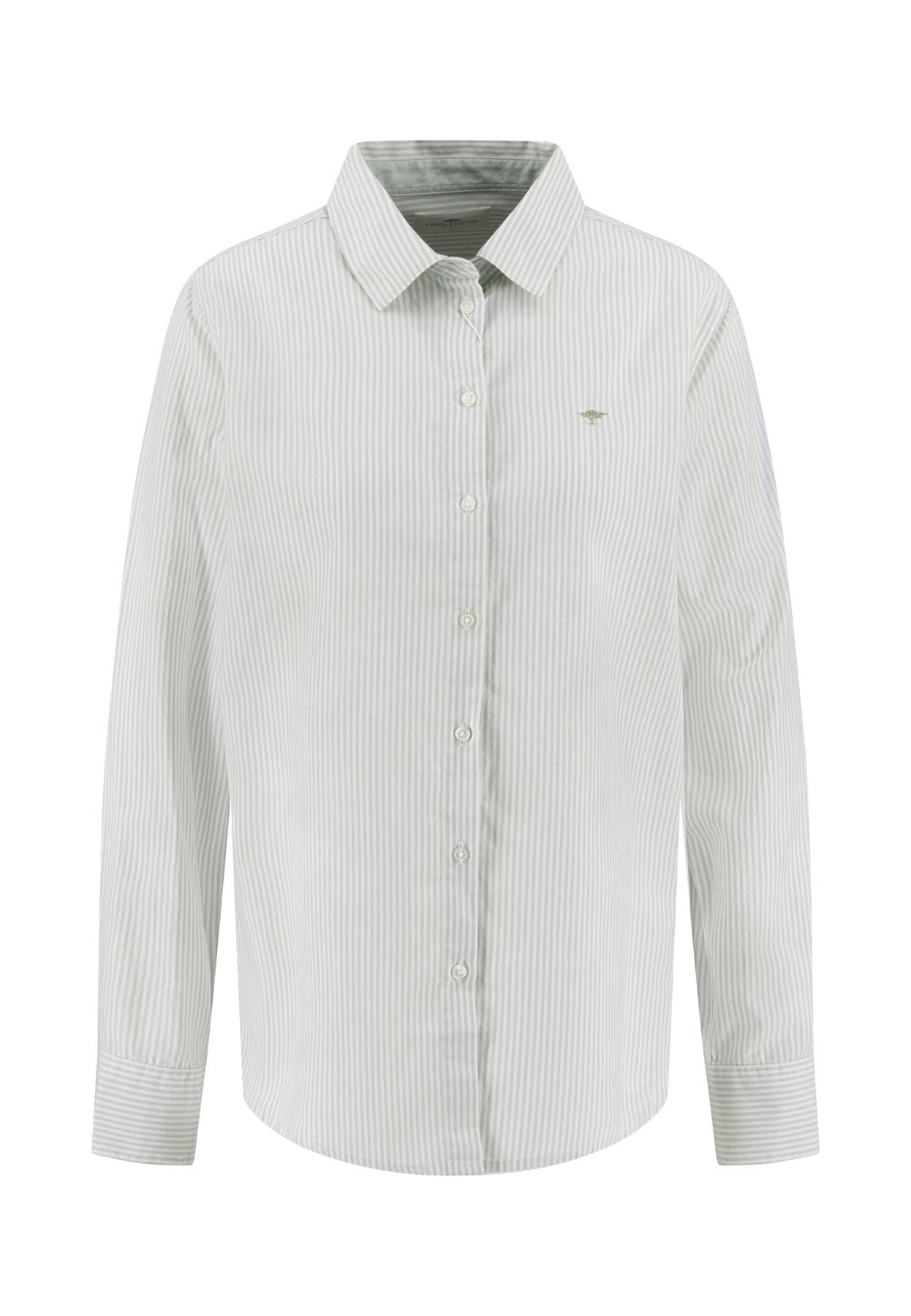 Mit ihrer feinen Streifenstruktur und dem klassischen Schnitt bringt diese Bluse frische Eleganz in deinen Alltag.