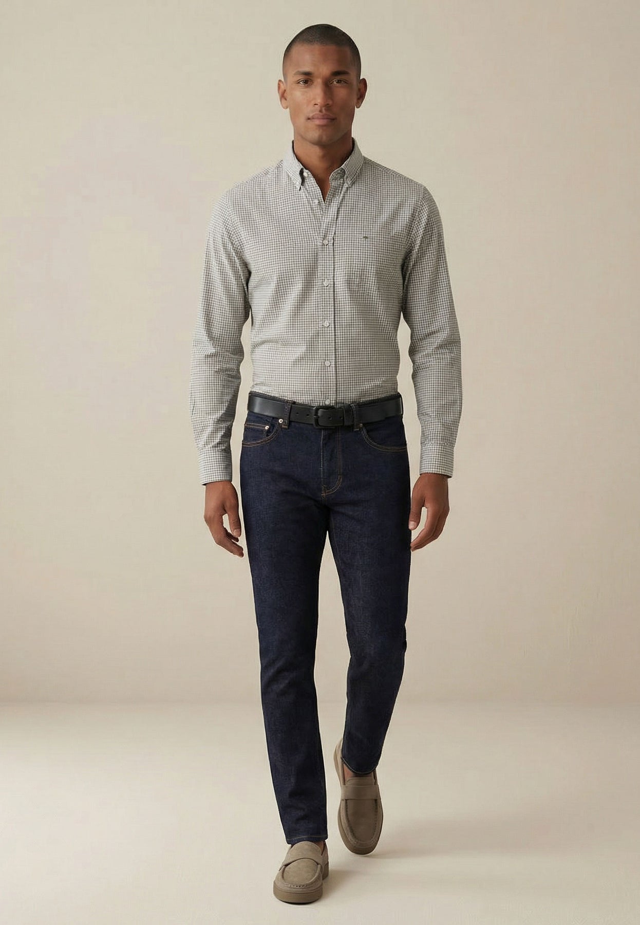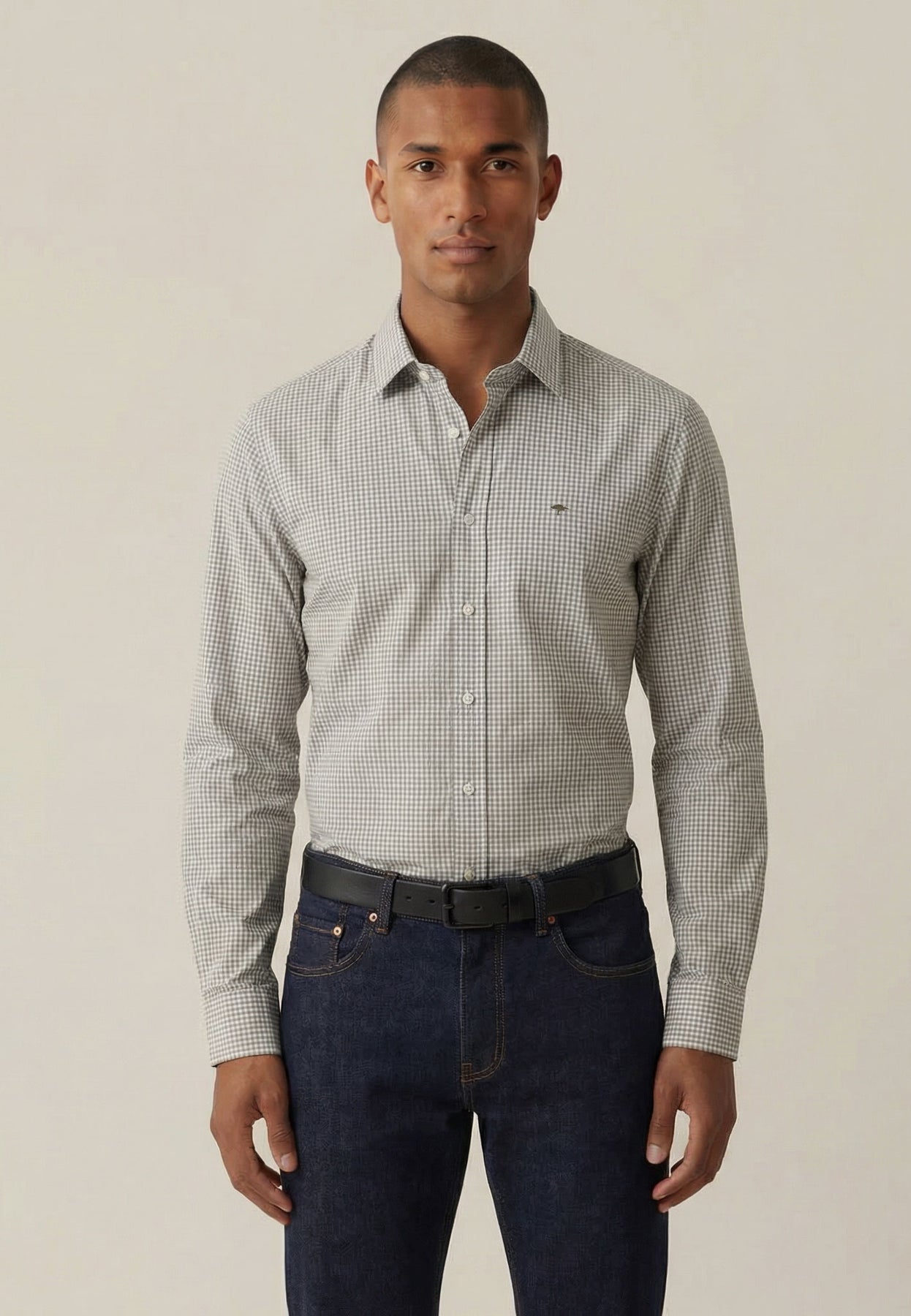 Dieses Hemd aus reiner Baumwolle überzeugt mit seinem feinen Karomuster und einem angenehm leichten Tragegefühl. Der Kentkragen und die durchgehende Knopfleiste sorgen für eine klassische, gepflegte Optik, während die dezente Logo-Stickerei auf der Brust einen zurückhaltenden Akzent setzt. Dank der hochwertigen Materialqualität trägt sich das Hemd besonders komfortabel und eignet sich ideal für Alltag, Büro oder gepflegte Freizeitlooks. Ein zeitloses Essential mit klarer Linienführung.