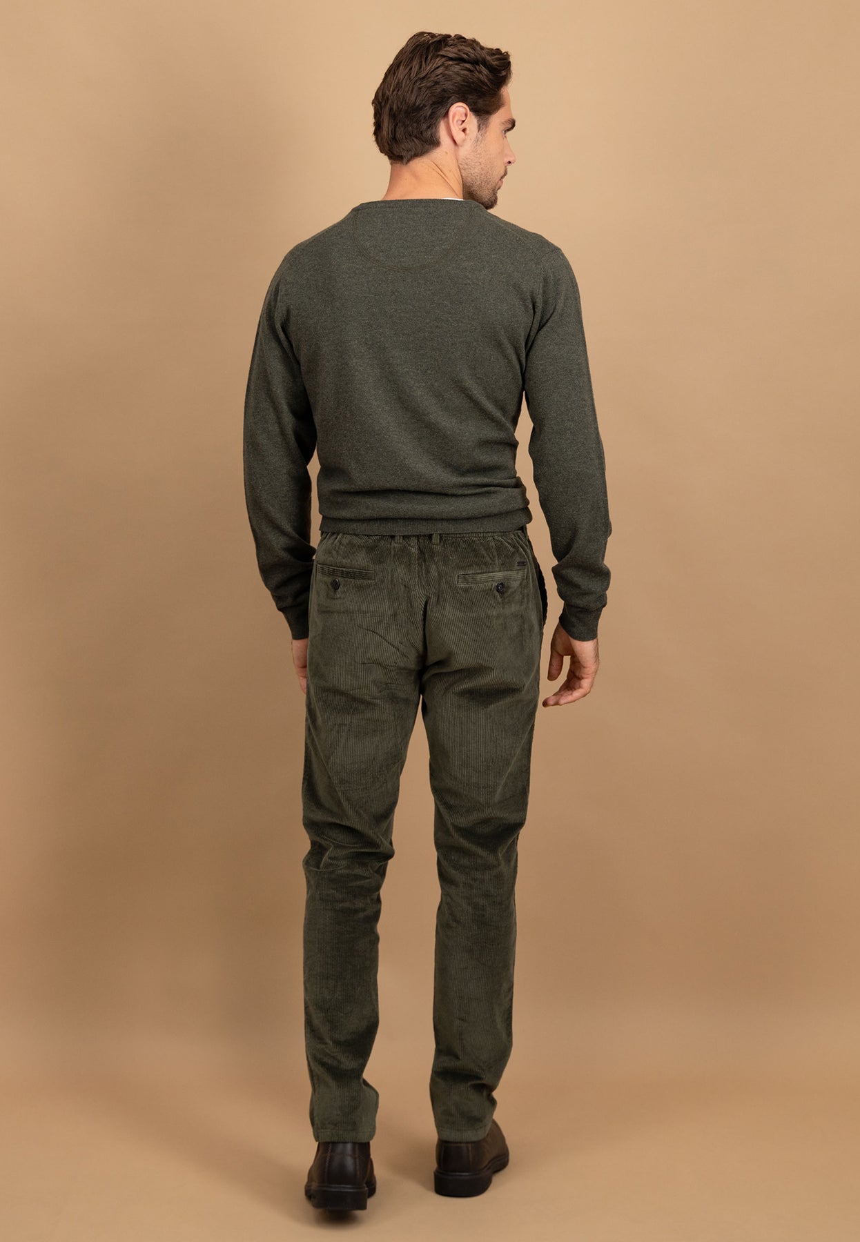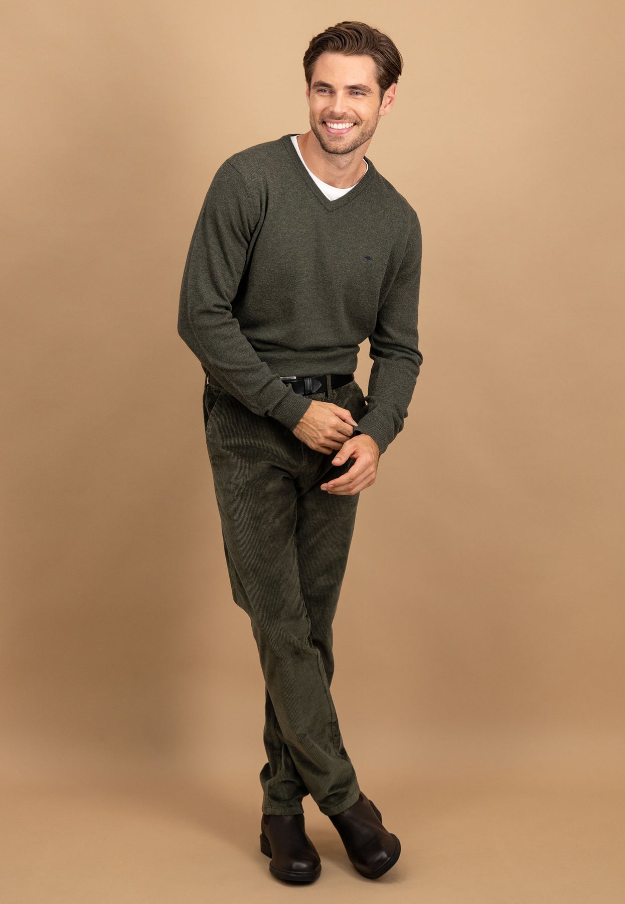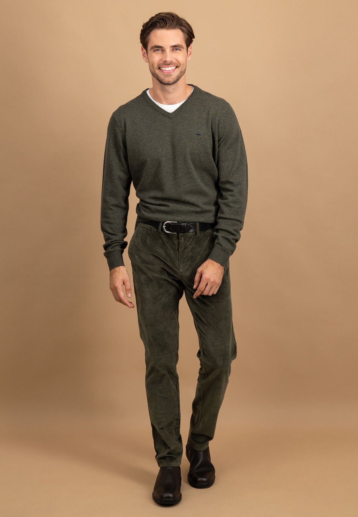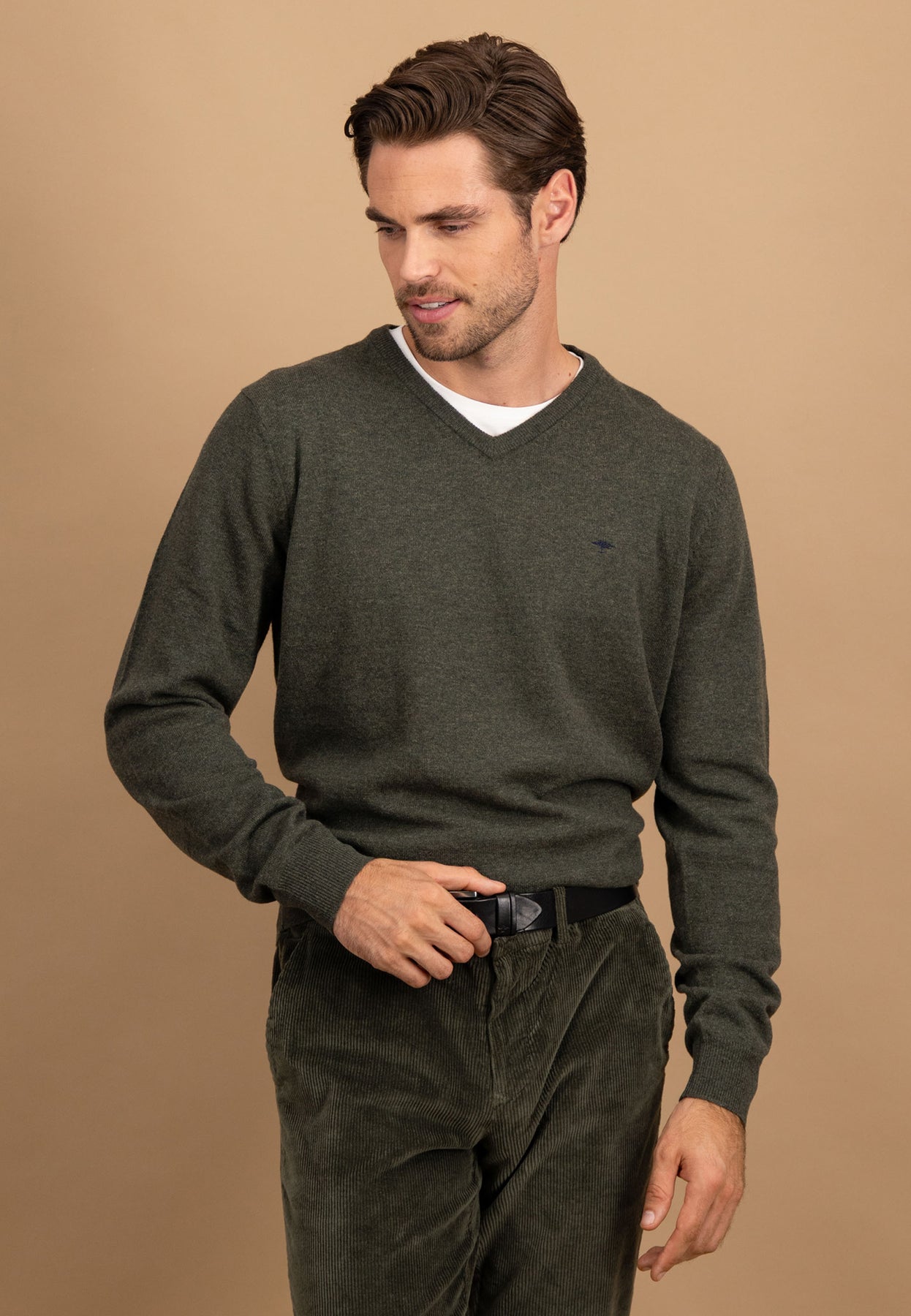 Aus 100 % Wolle gefertigt, überzeugt er durch natürliche Atmungsaktivität und formstabilen Komfort. Der klassische V-Ausschnitt macht ihn zum idealen Begleiter über Hemden oder Shirts, während feine Rippabschlüsse an Saum und Ärmeln für eine gute Passform sorgen. Ein vielseitiger Klassiker für stilvolle Alltags- und Business-Looks.