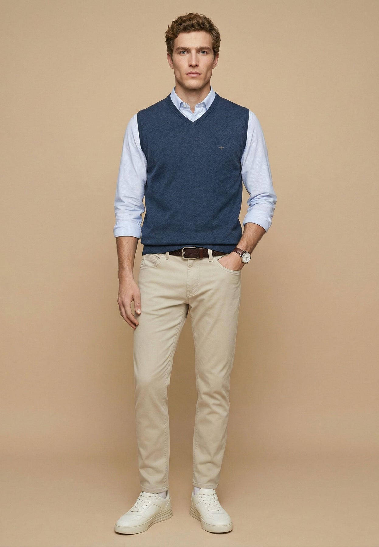 Aus reiner Baumwolle gefertigt, überzeugt er durch angenehme Haptik, natürliche Atmungsaktivität und hohe Formbeständigkeit. Der feine Strick sorgt für ein dezentes Erscheinungsbild, das sich sowohl über einem Hemd als auch mit T-Shirt perfekt in deinen Alltag integrieren lässt. Das kleine Logodetail auf der Brust rundet den Look markentypisch ab.