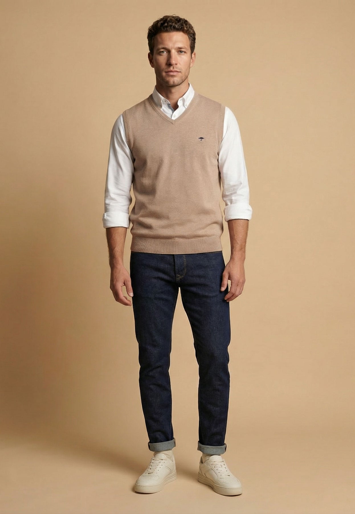Der klassische V-Ausschnitt macht diesen Pullunder zu einem stilvollen Begleiter für deinen gepflegten Lagenlook.