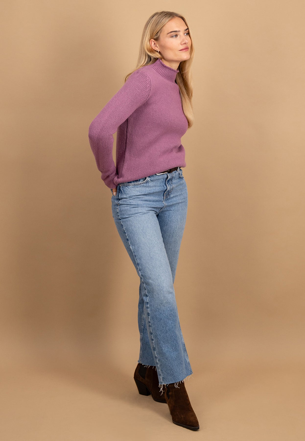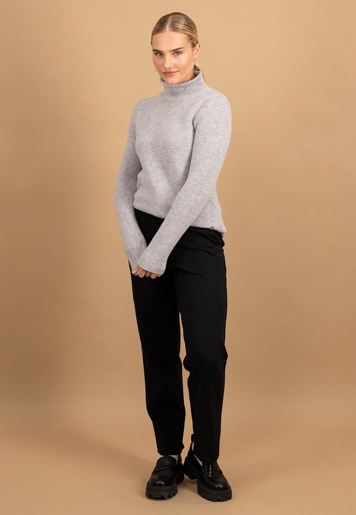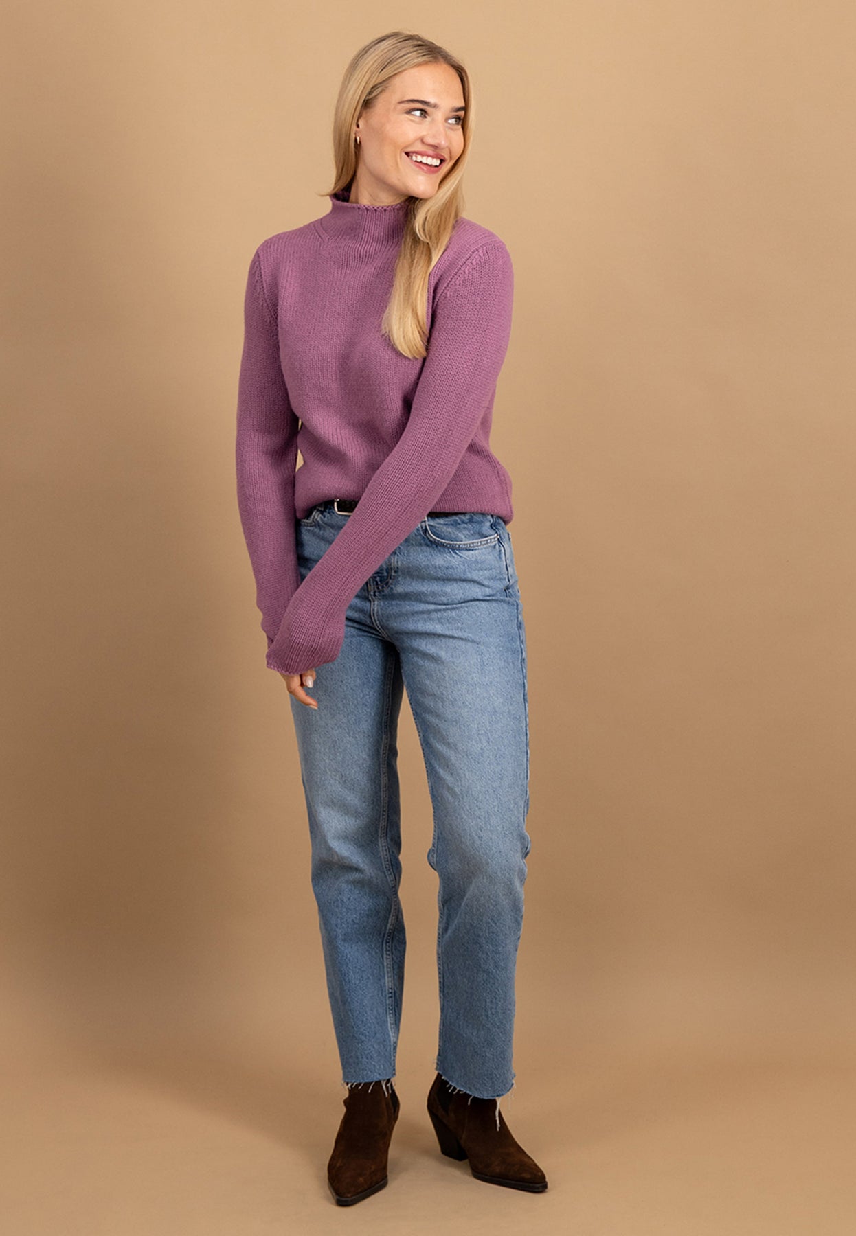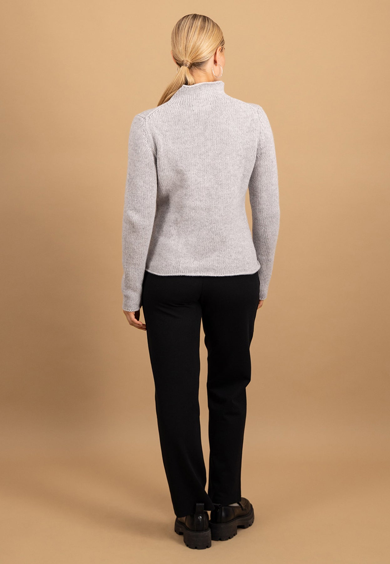 Der puristische Look und der weich anliegende Stehkragen verleihen diesem Pullover eine moderne, feminine Ausstrahlung.
