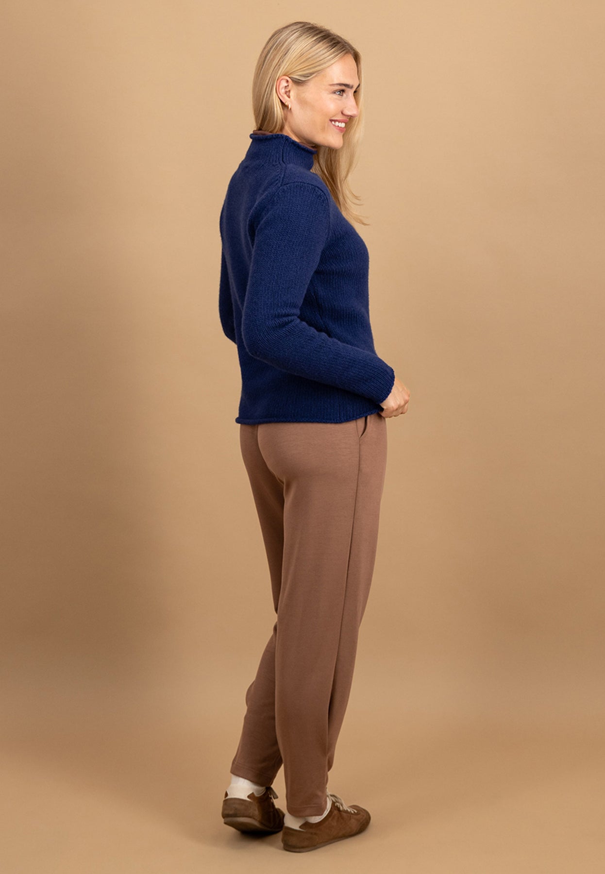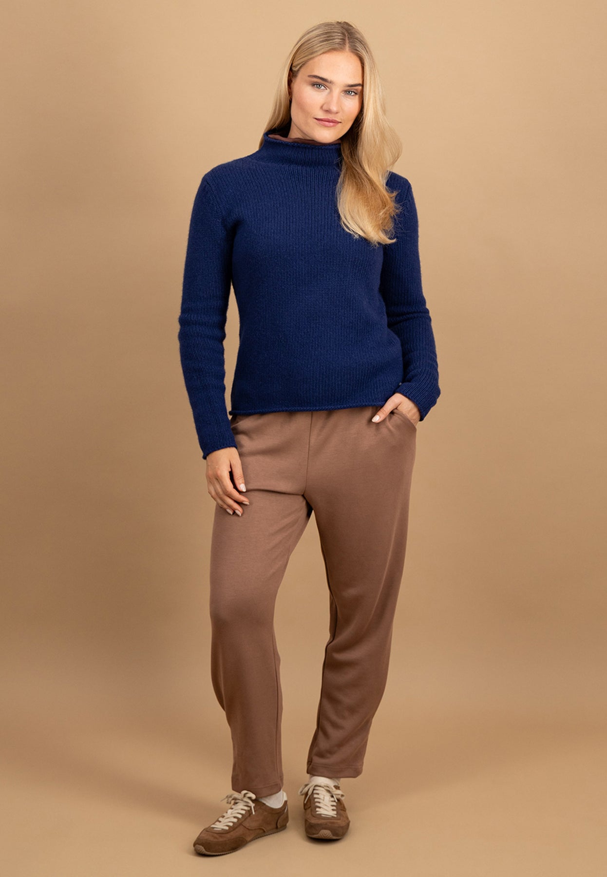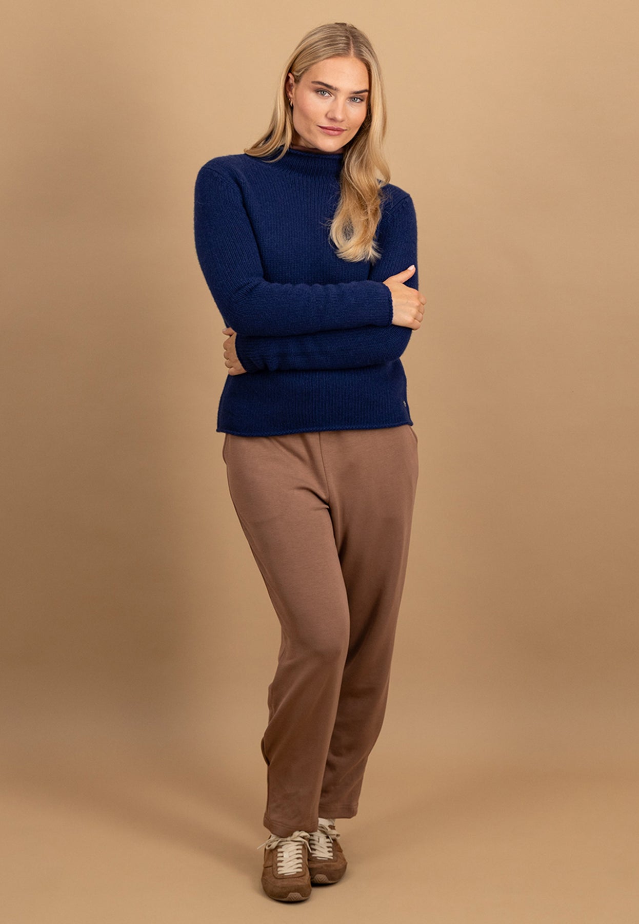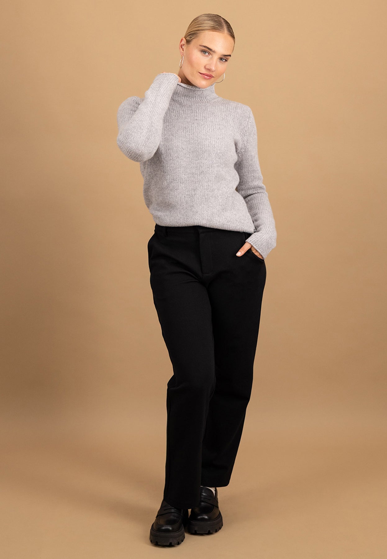 Der puristische Look und der weich anliegende Stehkragen verleihen diesem Pullover eine moderne, feminine Ausstrahlung.
