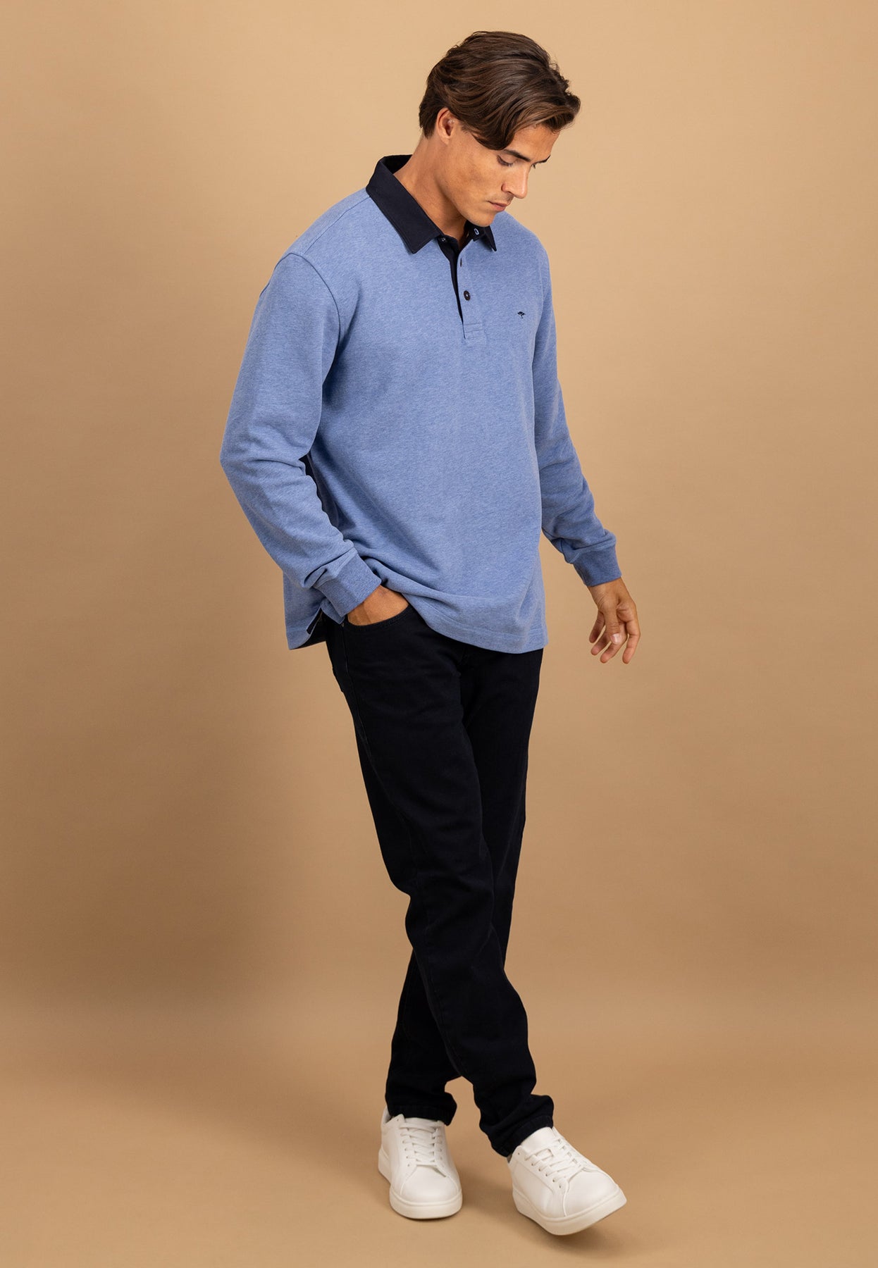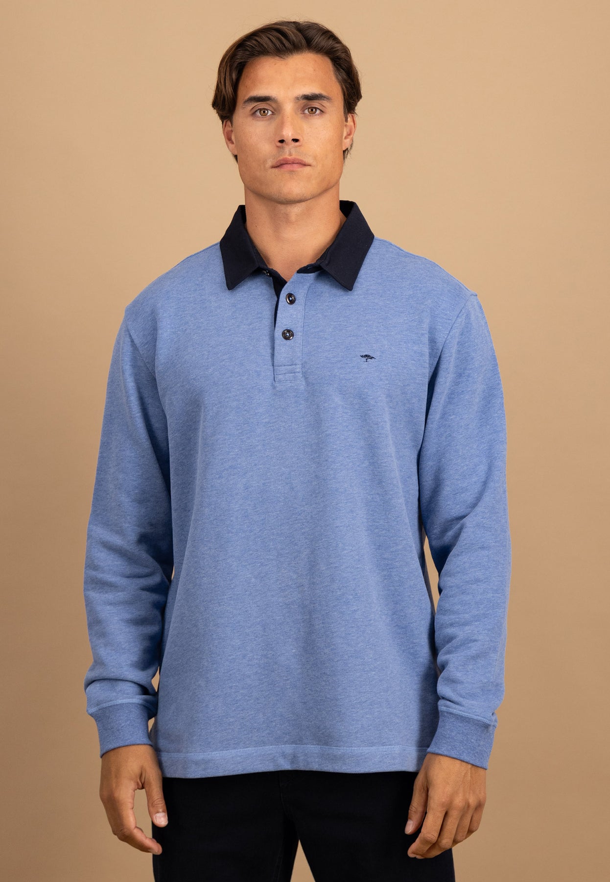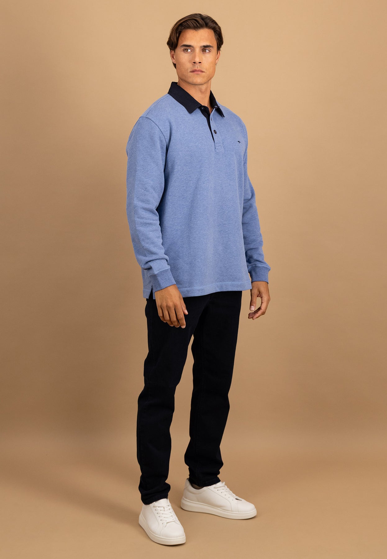Der markante Kontrastkragen setzt einen stilvollen Akzent, während die klassische Knopfleiste und die Rippbündchen an den Ärmeln den zeitlosen Polo-Look unterstreichen. Ob lässig zur Jeans oder schick zur Chino – dieses Langarmshirt kombiniert klassische Eleganz mit modernem Komfort und ist vielseitig einsetzbar.