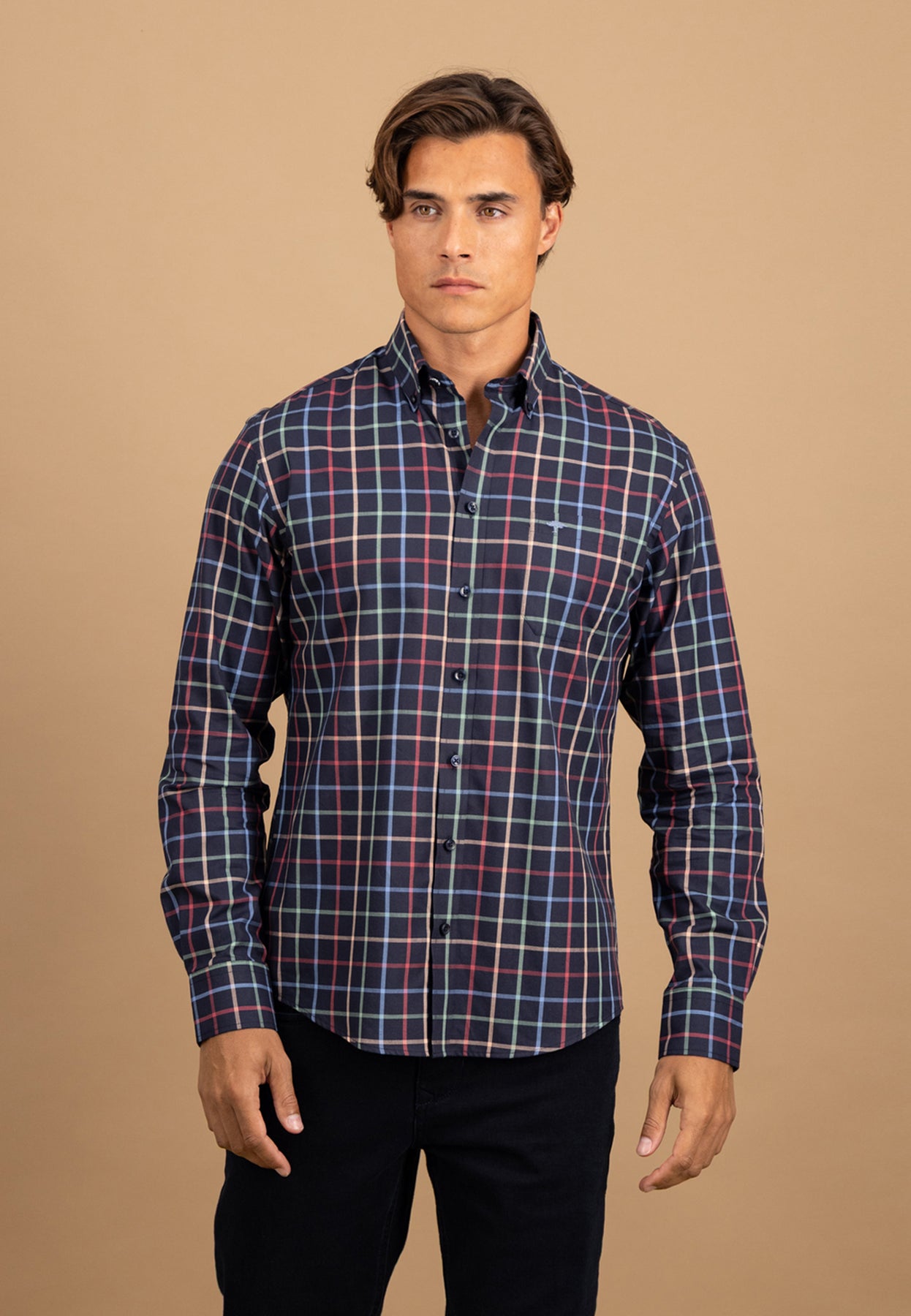 Dieses Hemd aus reiner Baumwolle kombiniert ein traditionelles Karomuster mit modernen Farbakzenten in Blau, Rot und Beige – ideal, um deinem Outfit eine stilvolle Note zu verleihen. Die weiche Stoffqualität sorgt für angenehmen Tragekomfort, während der Button-Down-Kragen und die Brusttasche mit FYNCH-HATTON-Logo dezente Details setzen. Ob unter einem Pullover oder solo getragen: Mit diesem Hemd bringst du Qualität, Lässigkeit und Zeitlosigkeit perfekt in Einklang.