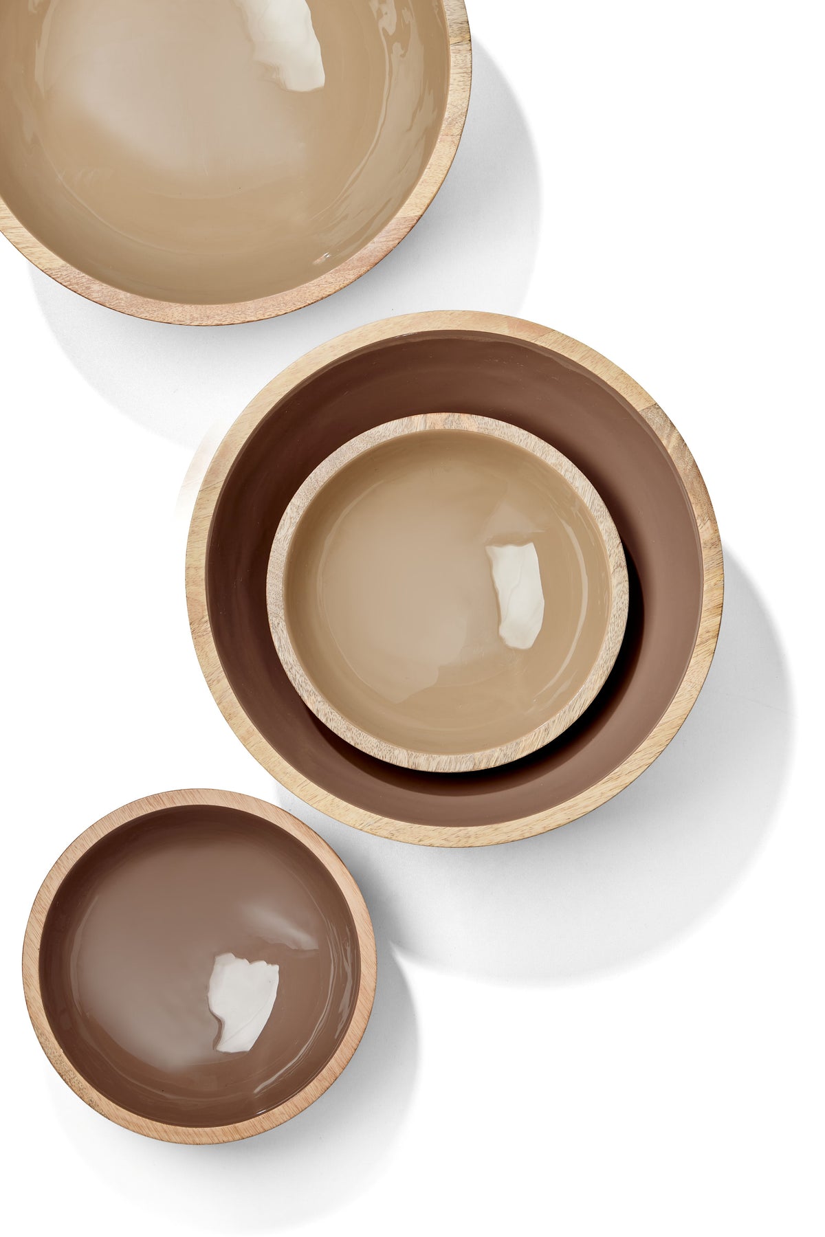The SINGITA enamel bowl made of high-quality mango wood is both useful and decorative. We love them for exactly these qualities. An enamel coating on the inside creates an elegant gloss effect that gives the bowl a subtle shine. The coating is also food-safe, which is why you can easily fill the bowl with salads, fruit or snacks. The mango wood impresses with its individual grain and its beauty colour.